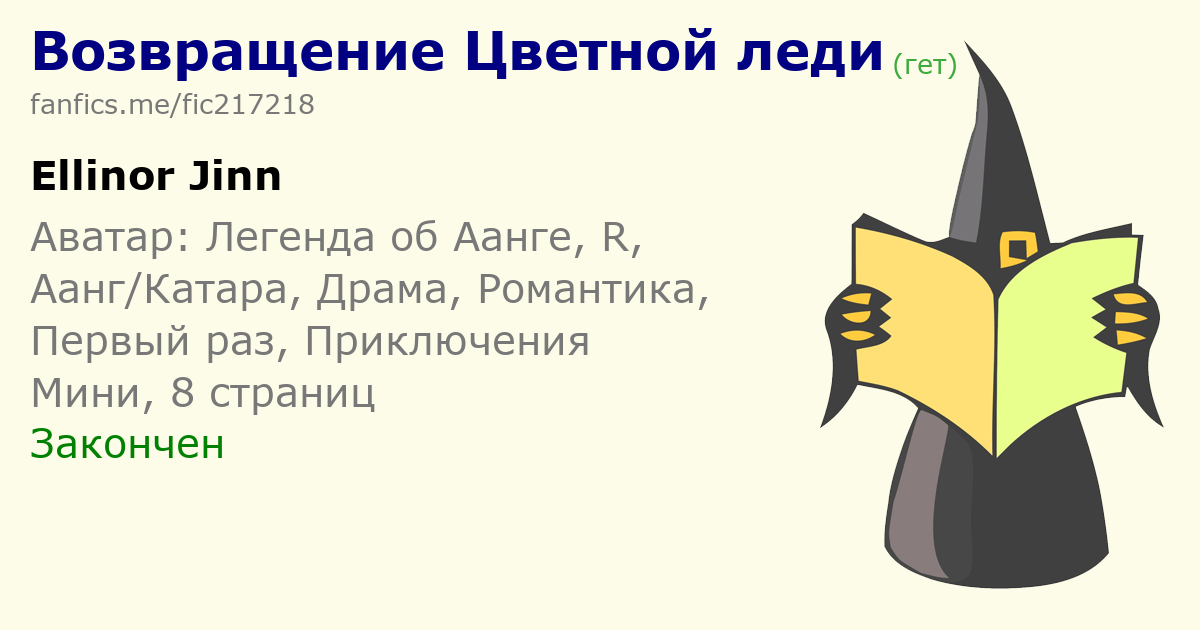 | Птица Гамаюн У врагов ещё остались не вырванные зубы А то... 100 лет - не фунт изюма.(Она успела пожалеть Азулу, это примечательно!) Ну если не пожалеть, то в какой-то степени понять... Катара под конец стала слишком уж могучей кмк.(Но ведь Катара наверняка тоже перерождается, и они были и будут вместе, пусть не в каждой жизни))) Это {Aangelburg} точно знает))Этому селению ещё повезло, что Аангу неприемлемо насилие (и то у него кулаки чесались перейти в состояние аватара) Да уж перешел! Но увидел человечность Ченг и остыл.Спасибо за подарок! Большое большое! Рада радовать хорошего человека!)) Спасибо большое за отзыв!1 | |